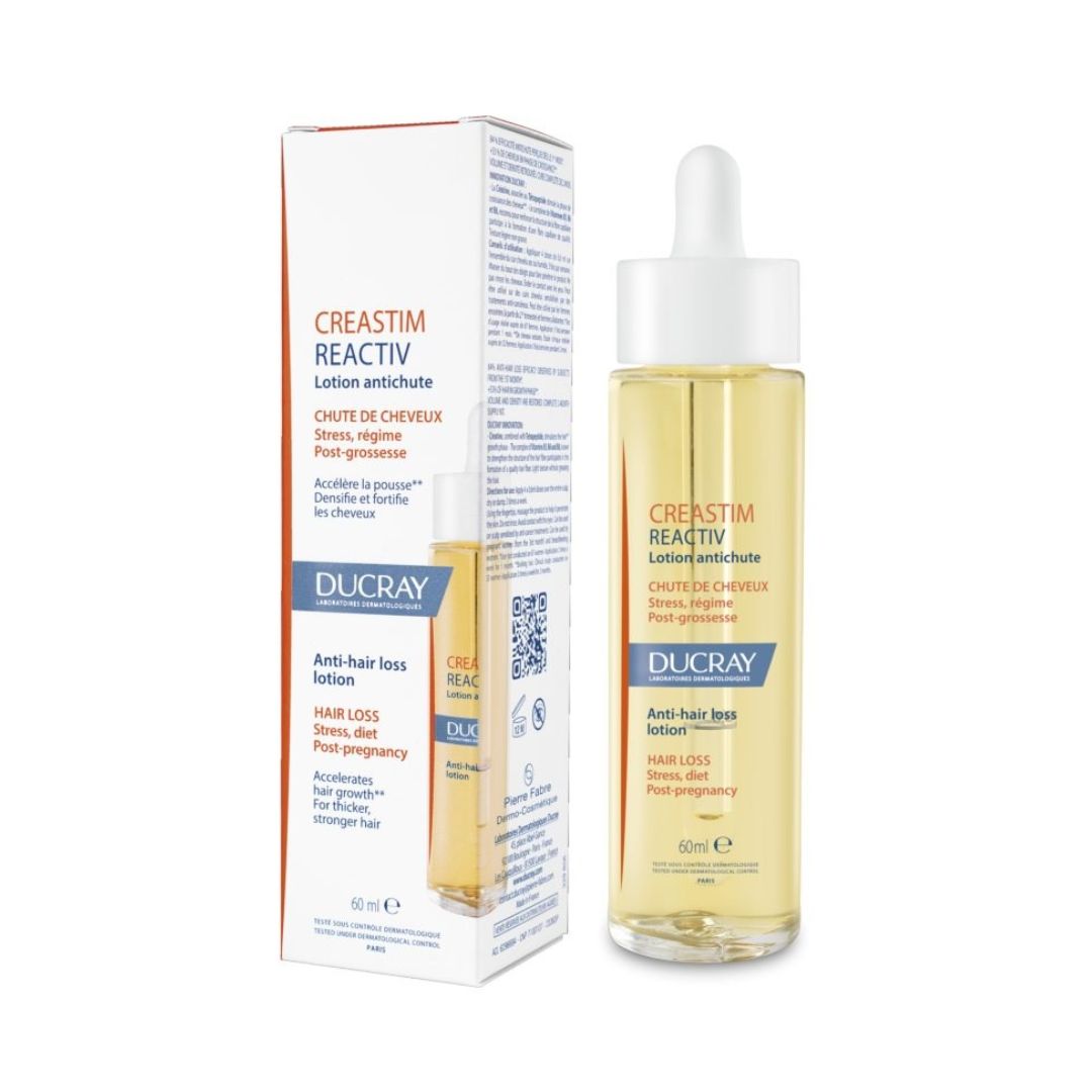 Locioni kundër rënies së flokëve Ducray Creastim Reactiv 60ml zvogëlon rënien e flokëve të rastit për shkak të situatave stresuese si COVID-19, pas shtatzënisë, ndryshimet sezonale, lodhja, dieta dhe trajtimet mjekësore. Për më tepër, përshpejton rritjen e flokëve, duke nxitur flokë më të trashë dhe më të fortë.