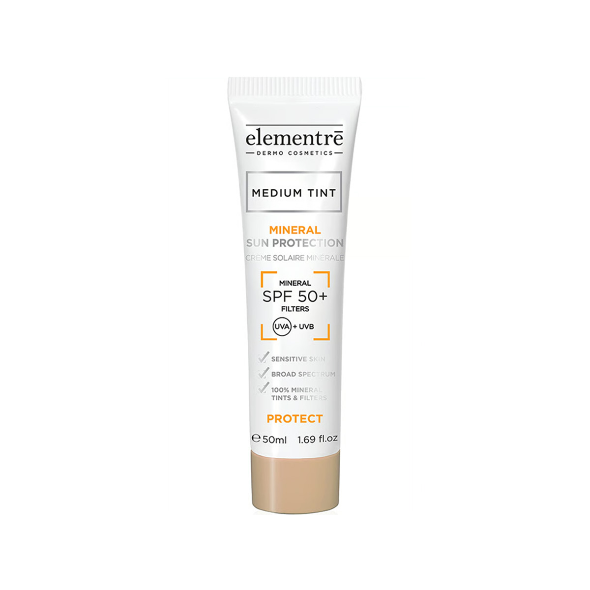 Elementre Mineral Sun Protection Tinted (SPF 50+) është një krem dielli mineral me formulë të avancuar me filtër 100% mineral, i cili ofron mbrojtje shumë të lartë nga rrezet UVA dhe UVB. Ky produkt kombinon mbrojtjen efektive të lëkurës me një nuancë natyrale mesatare që ndihmon në njëtrajtësimin e tonit të fytyrës, jep pamje të freskët dhe është i përshtatshëm edhe për lëkurë të ndjeshme ose pas trajtimeve estetike.