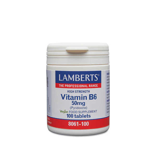 /Shtesa ushqimore & vitamina/Vitamina sipas përdorimit/Mbështetja e Imunitetit/Lamberts – B-6 50 mg (Pyridoxine) x100 tab