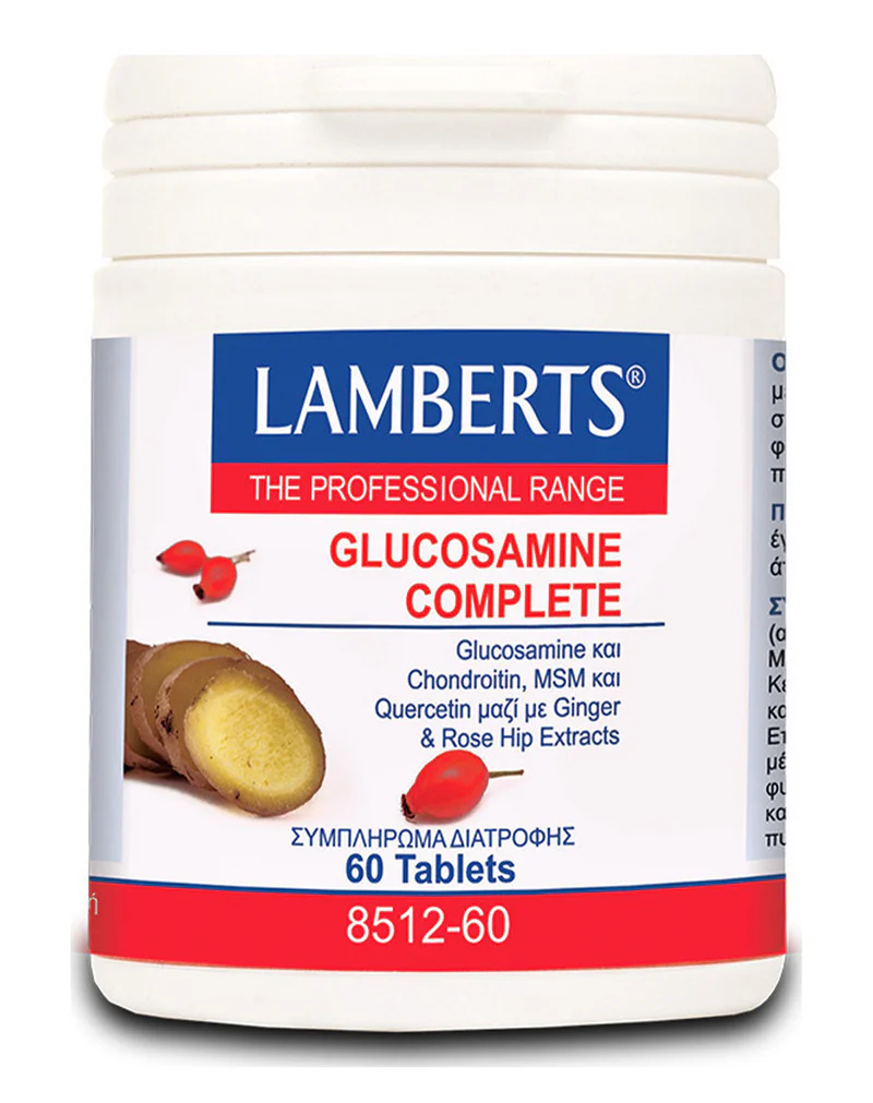 Lamberts Glucosamine Complete është një kompleks gjithëpërfshirës që kombinon sulfatin e glukozaminës me bazë bimore dhe kondroitinën (përkatësisht GlucosaGreen dhe phytodroitin), së bashku me një gamë të plotë përbërësish bioaktivë që mbështeten mirë në literaturën shkencore për rolin e tyre në shëndetin e kërcit të kyçeve.