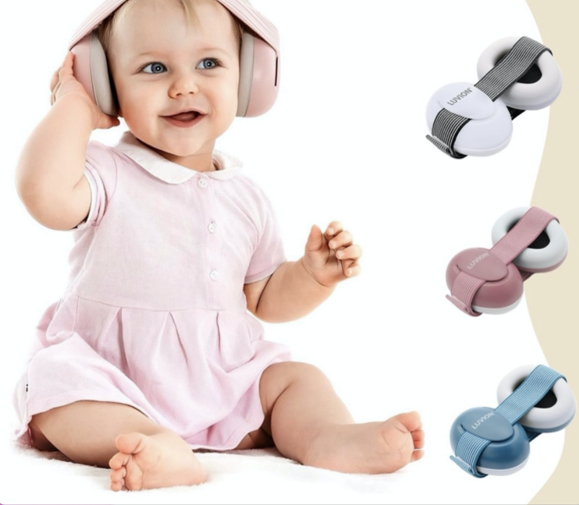 Kufjet mbrojtëse Luvion me llastik janë të dizajnuara posaçërisht për të mbrojtur dëgjimin e ndjeshëm të foshnjave dhe fëmijëve të vegjël nga zhurmat e larta.