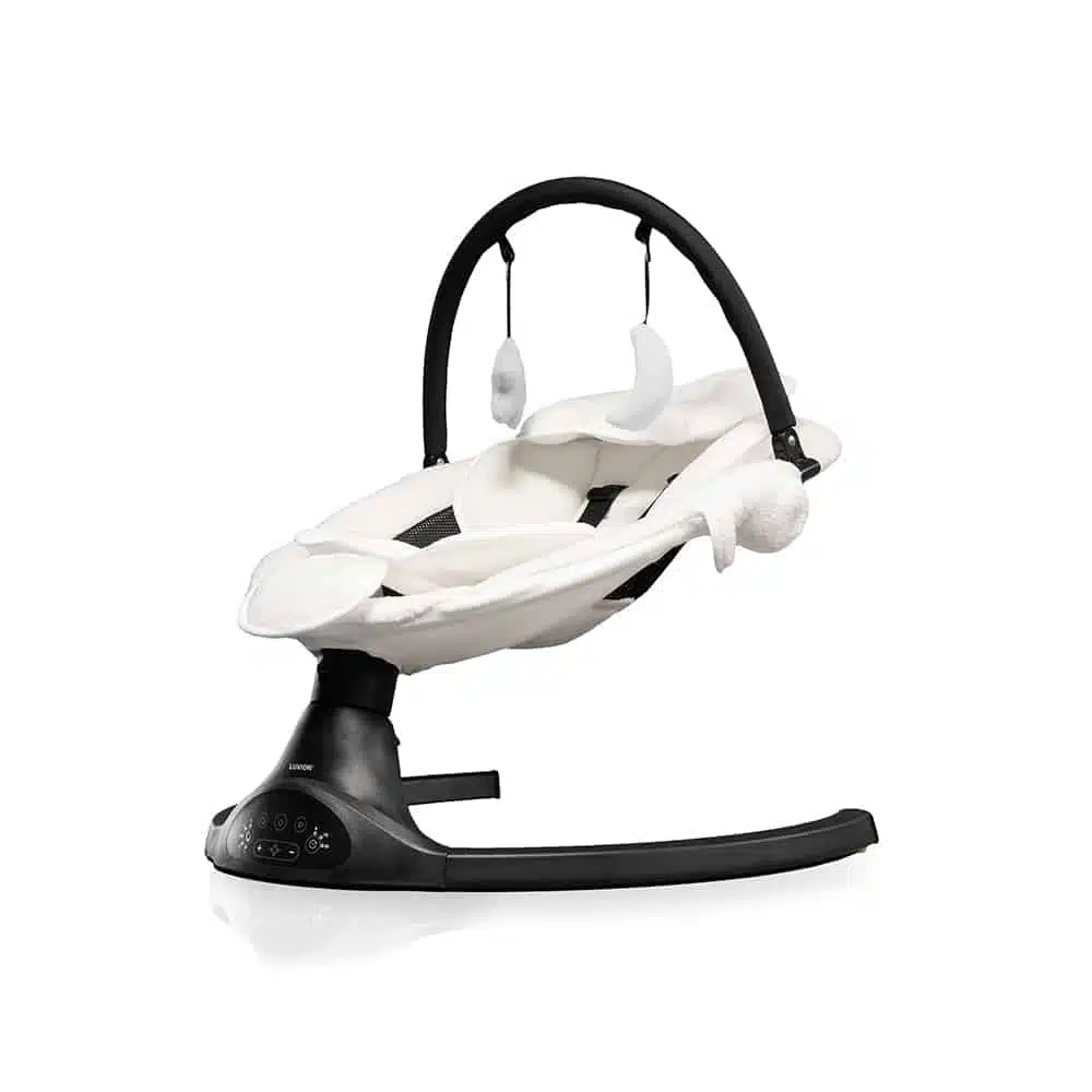 Lëvizësja Luvion Baby Swing është ideale për të relaksuar foshnjën tuaj. Është e mrekullueshme të shohësh të voglin tuaj duke u relaksuar nën lëvizjet automatike të lëvizeses! Përveç kësaj, Lëvizësja Elektrike për Baby Swing përmban edhe një altoparlant në të cilin mund të luani lehtësisht ninullën e tij të preferuar përmes telefonit tuaj dhe një hark lojërash me lodra në të cilat i vogli juaj mund të luajë në mënyrë të sigurt.