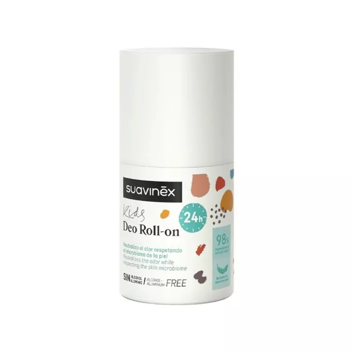 Suavinex Kids Deo Roll On deodorant për fëmijë që ndihmon në zvogelimin e aromës së pakëndshme.Pa alkool dhe pa kripëra alumini gjithashtu I përshtatshëm për lëkurë të ndjeshme.