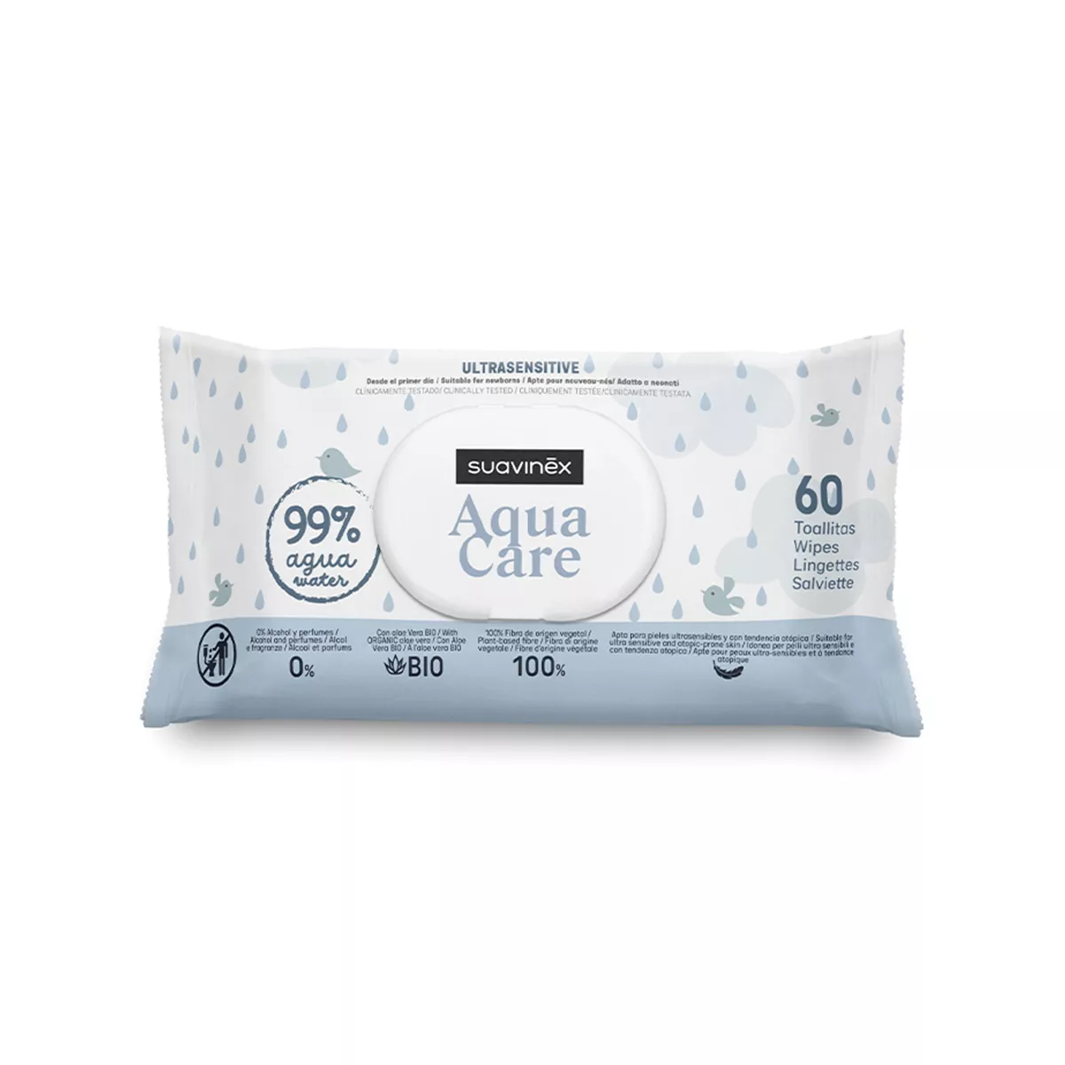 Suavinex Letra të lagura janë formuluar me 99% ujë dhe përbëhen nga fibra me bazë bimore për t’u kujdesur për lëkurën më të ndjeshme.