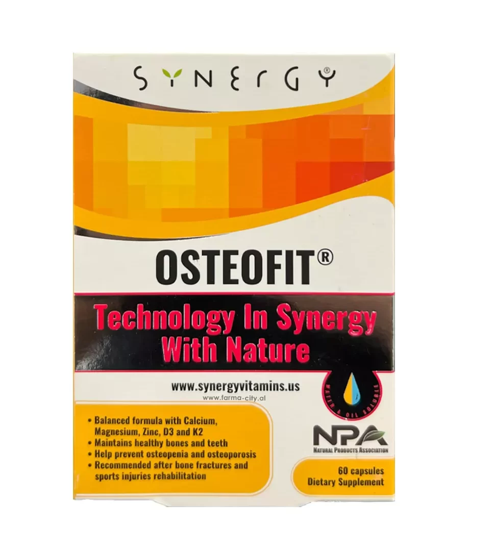 Osteofit Synergy është një kombinim i balancuar natyral dhe organik i mineraleve dhe vitaminave të nevojshme për forcimin e kockave dhe ruajtjen e strukturës së tyre. Ato janë të rëndësishme në parandalimin e osteoporozës dhe osteopenisë, gjatë rritjes së përshpejtuar të fëmijëve, te gratë shtatzëna, atletët , gjatë menopauzës dhe të moshuarit.